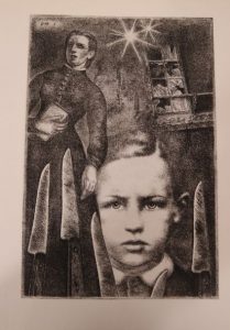 Les Poètes de sept ans. Paris, GLM, 1939. In-4, en feuilles, couverture imprimée. Édition illustrée de 7 pointes-sèches de Valentine Hugo reproduites en phototypie.