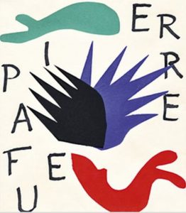 Pierre à feu. Paris, Maeght, 1947. In-8, broché, couverture illustrée. Édition originale illustrée d'une couverture en 5 couleurs, d'un frontispice, d'une lithographie originale hors texte, d'un bois gravé et de 14 héliogravures inédites d'Henri Matisse.