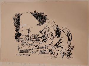 – 2 dessins originaux à l'encre de Chine rehaussés de gouache blanche, tous deux représentant Curnonsky et ayant servi à l'illustration des pages 20 et 191,