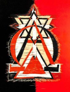 L'Apocalypse selon Saint Jean. Préliminaire de Robert Rey. Préface de Paul Claudel. Paris, Nice, Imprimatur, 1954. In-folio, emboîtage maroquin noir, dos lisse orné du titre en lettres noir sur pastilles de maroquin rouge, premier plat de plexiglas laissant apparaître la couverture illustrée (Loutrel). Édition illustrée de 26 compositions en couleurs de Henry de Waroquier gravées sur bois par Gérard Angiolini.