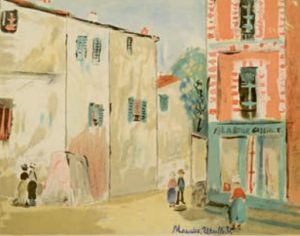 Maurice Utrillo. V. Paris, Joseph Foret, 1956. In-folio, en feuilles, couvertures, chemise et étui de l'éditeur. Édition illustrée de 11 lithographies par et d’après Maurice Utrillo (ces dernières par Mourlot), dont 8 en couleurs, une en noir et 2 en sépia (l’une formant page de titre), ainsi qu’une lithographie d’après Suzanne Valadon et une lithographie d'après Lucie Valore. Préface de Sacha Guitry ; textes inédits de Benoît, Maurois, Cocteau, etc.