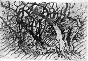Dialogue de l'arbre. Paris, Klein, 1958. In-folio, en feuilles, couverture rempliée illustrée, non rogné, emboîtage de l'éditeur. Illustré de 6 eaux-fortes dont 5 à double page et 20 bois d'Édouard Pignon.