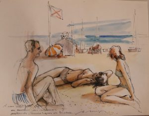 Dessins ou aquarelles sur divers papiers collés sur les pages numérotées lesquelles contiennent pour certaines, un envoi autographe signés des artistes.