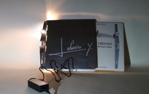 Livre-objet Le Book. 1995. Coffret in-4 en aluminium, deux petits tubes à bulle bleus. Contient aussi un exemplaire neuf du livre de CHARTIER (Michèle). Yonel Lebovici – Sculpteur de haut niveau. S.l., Éditions Stein Ouaki, s.d.