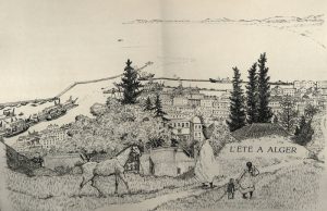 Ensemble 2 ouvrages CAMUS (Albert). Noces. Lubineau, 1959. In-8, en feuilles, couverture imprimée, chemise et étui blancs de l’éditeur. Ouvrage illustré de 20 eaux-fortes originales de Jacques Houplain, dont 2 culs-de-lampe. Tirage à 425 exemplaires, celui-ci un des 69 sur vélin de Rives comportant une suite des eaux-fortes avec remarques, une planche refusée, une épreuve sur soie. Légères rousseurs sur le bord de l'épreuve sur soie.