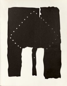 Catalogue d’exposition. Paris, Galerie Alexandre Iolas, 1966. In-8 carré, broché. Édition originale du texte de Gillo Dorfles, illustré de 4 superbes doubles feuillets colorés et perforés.