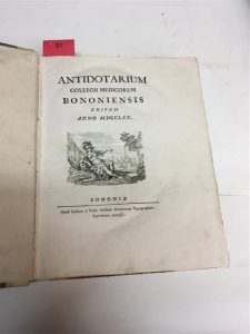 [BOLOGNE. - ALDROVANDI (Ulisse):] Antidotarium collegii medicorum Bononiensis. Bologne, Lelio Volpi, 1770, in-4, demi-vélin rigide à coins, dos lisse