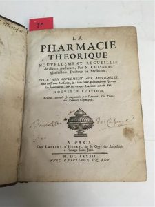 35. CHESNEAU (Nicolas) : La Pharmacie théorique nouvellement recueillie de divers autheurs (). Nouvelle édition. Reveuë, corrigée & augmentée par l'auteur, d'un Traité des remèdes chymiques. Paris, Laurent d'Houry, 1682, in-4, basane brune, dos à nerfs cloisonné et fleuronné, tranches mouchetées, 274 pp. (y compris le titre), [4] ff. n. ch. (table).