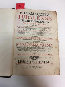 Ferguson I, 167. Edition originale de la pharmacopée (non officielle) la plus en usage dans le Portugal du XVIIIe siècle. Sans la troisième partie, publiée seulement en 1751. Le botaniste Coelho était originaire de Setubal, d'où l'adjectif Tubalense de cette compilation. Quelques annotations manuscrites en marge.