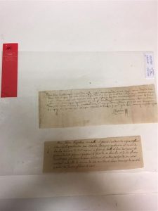 et du 1er janvier 1604, signées par un premier médecin du Roi, à savoir Jean Chapelain (médecin de Henri II), et Jean de La Rivière (pour Henri IV). Deux ff. oblongs (9,5 x 30 cm ; 7 x 23,5 cm).