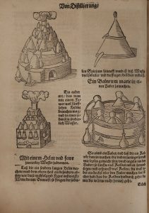 [Livre du XVIe siècle]. BRUNSCHWIG (Hieronymus). Distilierbuch der rechten Kunst. Newe und gemein Distilier und Brennöfen, mit aller zugehörender bereitschafft zu machen, auss allen Kräutern die Wasser zu brennen, und Distilliere. [Au colophon] :...