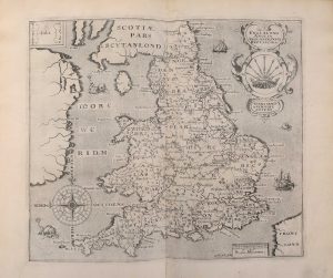 (lectori), 860 p., [12] f. veau havane époque, dos à 5 nerfs, caissons ornés, pièce de titre basane fauve, filet doré d'encadrement et médaillon central aux plats (traces de liens absents, rel. restaurée ; dernier f. contrecollé sur une garde ; brunissures au front., marges ordinairement jaunies avec menus défauts et salissures légères). Première édition in-folio, et surtout la première illustrée de cartes. L'antiquaire anglais William Camden (1551-1623) avait fait paraître cet ouvrage novateur, formant la première description topographique détaillée des îles britanniques, dès 1586. Il ne cessa de l'enrichir, plusieurs éditions suivirent, mais celle de 1607 surpasse toutes les autres en qualité. L'illustration comprend un frontispice illustré d'une carte, gravé par G. Hole, 8 gravures sur cuivre à pleine page de monnaies, des figures gravées sur bois dans le texte, et 57 cartes gravées sur cuivre (56 cartes régionales et une carte générale). Ex-libris ms. ancien, lord Hatton ; étiq. ex-libris Duchateau, avocat. : jésuites d'Enghien.