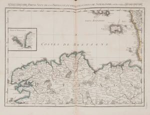 pièce de titre veau brun, double filet doré aux coupes, tranches rouges (3 coins émoussés ; infimes bruniss. sporadiques). Bel exemplaire de cet atlas composé de deux parties, la première décrivant la France administrative et militaire d'après les relevés de Cassini, et la seconde offrant un panorama des plus précis des places fortes protégeant le territoire. 1 titre général gravé à double-page ; 1 carte d'assemblage ; 1 titre gravé à double-page : " Carte de France divisée en XXI gouvernements militaires et en ses provinces par Mr. Cassiny de Thury " ; 23 planches doubles de cartes, limites coloriées ; 3 f. doubles (tables). [2e partie] : 1 titre gravé à double-page : " Plans et descriptions des principales places de guerre et villes maritimes des frontières du Royaume " ; une carte générale à double page et 16 planches doubles gravées présentant 110 villes fortifiées en médaillons avec textes explicatifs et blasons.