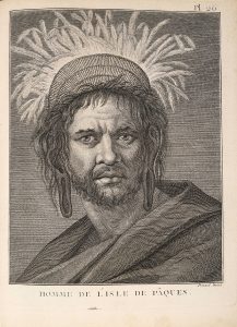 relation du Capitaine Furneaux, et celle de MM. Forster. À Paris, de Thou, 1778, 6 vol. in-8° et un atlas in-4°]. Atlas de 65 [sur 66] planches, la plupart dépliantes (Numérotées de 1 à 65, plus 10 bis ; manque la pl. n° 53), sans page de titre. Portrait de Cook en frontispice, cartes dépliantes, plans, scènes représentant divers évènements ou cérémonies, paysages, plantes, animaux, outils, armes, ornements, pirogues, portraits de Cook et d'indigènes de Tahiti, de l'Île d'Amsterdam, de l'Île de Pâques, des Marquises, de Nouvelle Calédonie et de Nouvelle Zélande, etc. (Brunet II, 255).