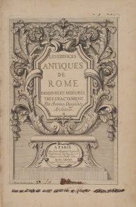 DESGODETS (Antoine). Les édifices antiques de Rome dessinés et mesurés très exactement. À Paris, chez J.B. Coignard, 1682. In-folio, [1] titre gravé, [6] f., 323 p., demi-basane brune du XIXe. siècle, dos à 6 nerfs, titre doré, caissons à...