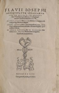[Livre du XVIe siècle]. FLAVIUS JOSEPHE. Antiquitatum Iudaicarum libri XX, De bello Iudaico libri VII, Contra Apionem libri II, De Imperio rationis, sive De Machabaeis liber unus, à Des. Erasmo recognitus. [Au colophon] : Basileae, per H. Frobenium...