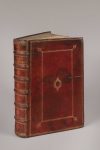 sur cuivre, [8] f., 921 p., [23] f., maroquin rouge époque, dos à 6 nerfs orné, titre doré, plats ornés d'un double encadrement de filets multiples et pointillés, avec 4 fleurons angulaires et un médaillon central, le tout doré, (coiffe de tête découverte, coins frottés, taches et légères griffures aux plats, bruniss., rousseurs, mouillure claire dans les marges de tête). Nouvelle édition de cette traduction établie par l'aventurier et polygraphe Blaise de Vigenère, l'astrologue d'Henri III. Parue pour la première fois à la fin du XVIe siècle, elle est ici servie par une superbe iconographie qui l'apparente aux livres d'emblèmes, composée de gravures à pleine page d'après le peintre Antoine Caron, réalisées par quelques-unes des plus grands artistes de l'époque : Thomas de Leu, Léonard Gaultier, Gaspard Isaac. Les exemplaires reliés en maroquin à l'époque sont peu communs. Ex-dono manuscrit André de Gaudemaris, 1916 ; cachet rouge moderne d'institution religieuse au titre. (Chatelain, Livres d'emblèmes, n°66).