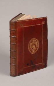 491 p., [32] f., maroquin rouge de l'époque, dos à 6 nerfs, caissons ornés, titre doré, plats ornés d'un double encadrement de triples filets et fleurons angulaires, avec médaillon central, le tout doré, roulette dorée aux coupes, tranches dorées (rel. un peu insolée, qq. taches aux plats ; titre un peu jauni, mouillure marginale angulaire en début de vol. puis sporadique sur certaines marges). Rare édition originale de cette importante étude sur la vie et les moeurs des Romains dans l'Antiquité, oeuvre maîtresse de l'historien allemand Rosinus (1551-1626). L'on y trouve recueillies une multitude d'observations touchant à tous les aspects de la vie quotidienne, y compris l'organisation religieuse et politique, la vie privée, les activités militaires le cinquième livre est consacré aux jeux, aux festins, aux moeurs de table, à l'habillement et aux cérémonies nuptiales et funéraires. L'illustration se compose de quelques figures gravées sur bois dans le texte, dont un plan de Rome à double-page (p.8-9), et un autre plan " Figura castramÉtationis romanorum " (p. 454-455) ; marques typographiques gravées sur bois au titre et au v° du dernier f. Provenance : médaillon doré du Collège jésuite de Bologne au plat supérieur, et prix pour Edouard Vincent, de ce même établissement (en 1717, mention manuscrite sur la garde), puis l'abbé Haffreingue, puis 2 cachets jésuites au titre dont Bologne ; S.J. Enghien (étiquette). (VD 16, R 3156 ; Brunet IV, 1398)