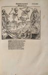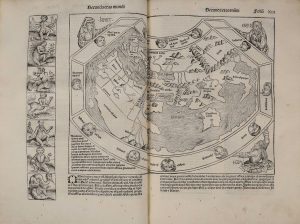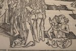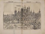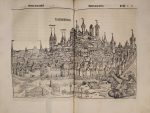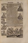 gravées sur bois, velin doré du XVIIe siècle, dos lisse et muet (rapport de condition ci-dessous). Édition originale de l'un des plus célèbres incunables illustrés, et l'un des ouvrages imprimés les plus remarquables de tous les temps. Monumentale chronique de l'histoire du monde depuis les origines, l'ouvrage est illustré de 1809 figures gravées sur bois par Michael Wolgemut et Wilhelm Pleydenwurff, imprimées d'après 645 bois différents, dont 1164 répétés, de taille variable, et parmi ceux-ci, 31 à double page. Parmi ces figures, se trouvent les portraits de 596 personnages illustres, saints, papes, empereurs, rois, princes, etc., tirés d'après 72 bois, certains ayant servi jusqu'à neuf fois. La même logique iconographique s'applique à la représentation des villes. Les principales villes et grandes vues représentées sont Jérusalem, Rhodes, Mayence, Venise, Rome, Gênes, Toulouse, Florence, Cologne, Augsbourg, Ratisbonne, Vienne, Nuremberg, Constantinople (3), Budapest, Strasbourg, Salzbourg, Erfurt, Wurtzbourg, Eichstätt, Bamberg, Magdeburg, Ulm, Passau, Munich, Prague, Breslau, Constance, Bâle, Sabatz, Cracovie, Lübeck et Neisse (Silésie), ainsi qu'une grande vue de la Mosquée d'Omar et de la destruction de Jérusalem. D'autres importants bois représentent la Création (7 figures), l'Univers et l'armée céleste, la création d'Eve, l'Expulsion du paradis, la chute d'Adam, Eve et ses fils, le pape Pie II et l'empereur Frédéric III ainsi que de très nombreuses figures d'une brillante exécution. Albrecht Dürer ayant étudié dans l'atelier de Pleydenwurff entre 1486 et 1489, certains historiens ont évoqué son éventuelle participation à la composition de dessins reproduits dans l'ouvrage. Exemplaire comprenant une vingtaine d'initiales peintes. Grand de marges : hauteur hors reliure = 46 cm. Probablement établi au tout début du XXe siècle. L'ouvrage ne présente pas de signatures, collation détaillée : fol. I à CCLVI (dont les fol. CCLVIIII, CCLX et CCLXI vierges, ne portant que le titre courant et la foliotation), [5] f. non chiffrés (concernant Pologne et Hanse), fol. CCLXVII à CCXCIC (1er colophon à la date du 4 juin 1493 au f. CCLXVI r°), [1] f. (partie droite de la carte, avec au verso le 2e colophon à la date du 12 juillet 1493). Une signature ancienne biffée sur la gravure de Constance (f. 241 r°), 2 notes marginales anciennes (f.256 r° et 260 r°, commentaire marg. ancien (f. 273 r°). Ex-libris manuscrit moderne au contreplat supérieur, daté de 1949. Rapport de condition : Reliure de réemploi, avec marques de décalage du velin sur le carton, des salissures sur la couvrure, fente partielle en queue d'un mors. - Plusieurs feuillets rapportés dont au début (le 1er de la table, le 1er du texte et fol. 6), se distinguent en raison de leurs marges remplacées (voir ci-après). - Le titre xylographié soigneusement monté à clair. - Travaux de vers sur la table et les premiers ff. de texte, sans gravité, cessant progressivement (juste 3 piqûres sur la carte au folio 12-13), limités à des piq. en marge à partir du f. 30 ; reprise sur le texte sans gravité à partir de fol. 283 jusqu'à la fin. - Marges remplacées aux feuillets suivants : titre, 1er f. de table, folios 1, 6, 30, 39, 42-44, 253, 261 (blanc), f. n.c. : pl. de Cracovie ; 267 ; 269, 270, 290, 298-300 (= dernier f.) ; restaurations et petits défauts à la carte. - Petits accidents et taches sur les 2 derniers f. non chiffrés (vue de Nissa) - Déchirures habilement restaurées en marge f. 99 touchant une fig. sur 1 cm sans perte, idem en marge p. 189, 217. - Auréoles claires en marge fol. 132-135. - Certains ff. jaunis. - Salissures et traces digitales en marge sans gravité. (ISTC is00307000 ; GW M40784 ; Goff S307 ; HC 14508).