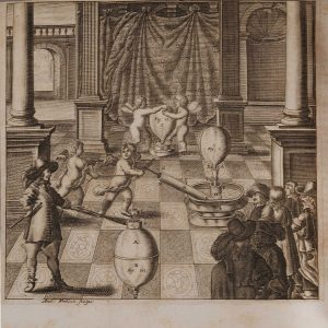 texte, bandeaux et initiales gravés sur bois, 1 frontispice gravé sur cuivre, 50 planches gravées sur cuivre, certaines dépliantes, reliure époque veau havane granité, dos à 5 nerfs, titre doré, caissons ornés, tranches mouchetées rouge (dos frotté, nerfs découverts au mors sup., coiffe de tête arasée, trav. de vers en tête du mors inf. ; intérieur ordinairement bruni, un coin mq. en marge p. 467, un autre anciennement recollé p.277, 2 pl. reliées tête-bêche). Édition originale du premier ouvrage publié par Gaspar Schott, savant jésuite et le principal disciple d'Athanase Kircher. Elle renferme en particulier la première relation de l'expérience des sphères vides, réalisée en 1654 à Magdebourg par Otto von Guericke. La première partie traitant de l'hydraulique théorique est illustrée dans le texte de nombreuses figures gravées sur bois. La deuxième partie commence à la page 173 et présente un grand nombre de machines liées à l'usage des propriétés hydrauliques (fontaines, élévation des eaux, etc). Elle est illustrée de 48 planches gravées sur cuivre. Exemplaire dont une partie des planches semble provenir d'une autre édition. En effet, la numérotation de celles-ci est cohérente pour les 33 premières, et parmi les 17 suivantes, certaines ont une numérotation d'un autre style, et d'autres ont un numéro corrigé à la main à l'époque. Ordinairement le livre contient en tout 46 planches, cet exemplaire en renferme 50. À la fin du volume se trouve le compte-rendu de l'expérience de Magdeburg, " Experimentum novum Magdeburgicum ", précédée d'une dédicace à Athanase Kircher, et illustrée de 2 planches, dont une dépliante. Ex-libris gravé XIXe s. A. Kunholtz-Lordat.