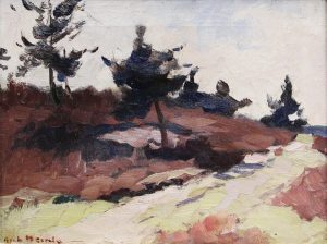 Huile sur toile, 25 x 34. Signée «Rich. Heintz» en bas à gauche. Titrée et datée au dos «Genk, nov. 1918. Rich. Heintz». Dans un cadre orné vieil or et gris.