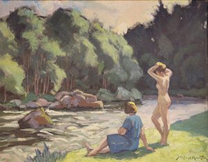 Huile sur panneau, 35 x 45. Signée «Alfred Martin» en bas à droite. Dans un cadre doré.