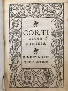 ARETINO (Pietro) Cortigiana comedia. S.l.n.d. [au colophon]: Milan, Giovanni Antonio Castiglione, 1535.