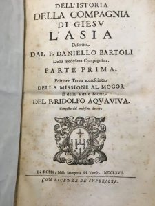 Le père Bartoli (1608-1685), originaire de Ferrare, retrace l'entreprise de la Compagnie de Jésus en Extrême-Orient (Inde, Goa, Chine, Japon, etc.), depuis l'envoi des premiers missionnaires au XVIe siècle, notamment saint François-Xavier.