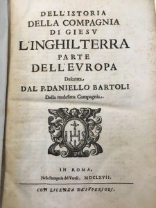 BARTOLI (Daniel) Dell' historia della compagnia di Giesu. L'Inghilterra, parte dell' Europa.