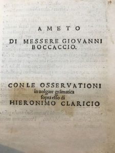 Imprimée en lettres rondes, elle contient un privilège de François Ier et des commentaires de Girolamo Claricio. Elle est citée par Gamba, Serie dei testi di lingua..., 1839, p. 66.