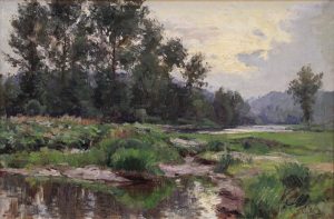 Huile sur toile, 30 x 45. Signée et datée «X. Wurth. 1913» en bas à droite. Dans un cadre doré à passe-partout de toile (un petit coup au cadre). Peintre principalement de paysages, né et mort à Liège (1869-1933), élève d’Adrien de Witte et de Carpentier, il travailla fréquemment avec Heintz (Arto).