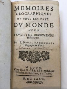 Pierre Duval (1619-1693), éditeur et géographe ordinaire du roi, était le neveu du grand cartographe Nicolas Sanson. Ses mémoires contiennent des détails fort intéressants pour la géographie, les mœurs et religions des habitants, ou encore l'histoire naturelle des diverses contrées du globe: l'Afrique (Égypte, Éthiopie, Lybie, Nubie, Congo, etc.), l'Amérique (Canada, Floride, Mexique, Pérou, Chili, Brésil, etc.), l'Asie (Chine, îles Philippines, etc.) et l'Europe. Des passages concernent également les terres arctiques et antarctiques.