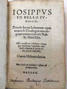 Édition originale de cet abrégé par Sébastien Munster du livre de Joseph ben Gorion connu sous le nom de Josippon, une histoire du peuple juif dont les sources principales sont Flavius Josèphe et le pseudo-Hégésippe.