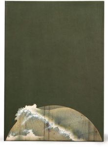 RELIURE. — Jean de Gonet. Reliures peintes. [1996]. In-4, veau souple kaki, pièce de veau découpée et peinte au pochoir en pied du premier plat, couverture illustrée, chemise et étui (Jean de Gonet 1998).