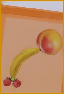 Collage 16 x 11. Daté «21 janvier 1968», signé «Marcel Mariën», et titré «Les fruits sans défense» en bas à l’encre noire. En belle condition. Sous verre et passe-partout, cadre de bois naturel.