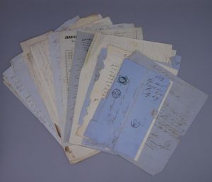 CORRESPONDANCES COMMERCIALES. ENSEMBLE D'ENVIRON 45 DOCUMENTS MANUSCRITS RELATIFS A ANTOINE BLANCHES, NÉGOCIANT A BORDEAUX. Correspondances commerciales, factures, etc. Émise de 1832 à 1850 environ. Ensemble de divers documents manuscrit dans des formats variables.