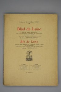 BARONCELLI - JAVON (Marquis de). BLAD DE LUNO - BLÉ DE LUNE. Recueil de poésies provençales avec la traduction française en regard et 155 illustrations représentant le taureau et le cheval dans l'art à travers les âges. Préface par Frédéric Mistral. PARIS, ALPHONSE LEMERRE - AVIGNON, ROUMANILLE, 1909. Un volume, in-4, broché de (5) ff., 240 pp., couverture rempliée imprimée en deux couleurs. Bon exemplaire.