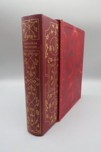 FABLIAUX DU MOYEN - ÂGE. ILLUSTRATIONS DE JEAN GRADASSI LYON, ÉDITIONS DU FLEUVE,1958. Un volume, in-4, pleine reliure éditeur rouge. Dos lisse décoré et doré portant le titre doré, plats entièrement recouverts d'un décor personnalisé doré, tête dorée, étui éditeur bordé.