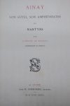 BOISSIEU (Alphonse de). AINAY. SON AUTEL, SON AMPHITHÉÂTRE, SES MARTYRS. LYON, SCHEURING, 1864. Un volume, in-8, de (3) ff., 135 pp., pleine reliure en veau havane. Dos à 5 nerfs cloisonné, fleuronné et doré portant deux pièces de maroquin, rouge et noir, pour le titre. Triple filet d'encadrement doré sur les plats, filets dorés sur les coupes, tranches dorées, large dentelle dorée intérieure.