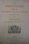 BOURÉE (André). LA CHANCELLERIE PRÈS LE PARLEMENT DE BOURGOGNE DE 1476 À 1790. DIJON, ALFRED BELLAIS, 1927. Un fort volume, in-4, de 412 pp., (1) f., demi-reliure moderne en chagrin havane. Dos à 5 nerfs portant seulement le titre doré, premier plat de la couverture conservé. Bon exemplaire.