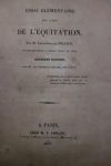 Impériale d'équitation de Paris. Cet ouvrage fut entrepris sur les conseils du comte de Thermes pour concourir à la place de professeur de l'École Royale et Militaire de Saint Cyr. Divisé en quatre leçons, il débute par un avant - propos contenant quelques observations faites en 1815 sur la décadence de l'art de l'équitation. L'auteur qui pense qu'une pratique raisonnée et suivie est infiniment préférable à une théorie, propose des principes essentiels de l'équitation : Il mène l'élève jusqu'aux airs assez compliqués de la vieille équitation française et de l'école de Versailles dont ce respectable écuyer fut à peu près le dernier représentant.
