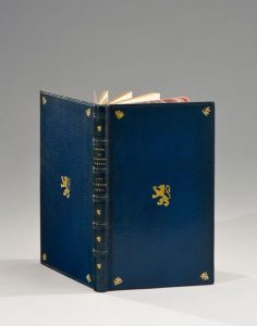 maroquin bleu - nuit . Dos à 5 nerfs cloisonné à froid et fleuronné de lions héraldiques dorés ; plats encadrés