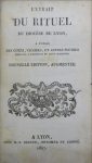 [LYON]. EXTRAIT DU RITUEL DU DIOCÈSE DE LYON, à l'usage des curés, vicaires, et autres prêtres employés à l'exercice du Saint Ministère. LYON, RUSAND, 1827. Un volume, in-12, de (2) ff., 168 pp., pleine reliure de l'époque en basane racinée. Dos lisse décoré de filets dorés et portant une pièce de titre en basane verte, tranches jaspées.
