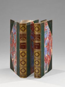 NIZIER DU PUITSPELU (CLAIR TISSEUR). SOUVENIRS LYONNAIS. LETTRES DE VALÈRE, colligées par Nizier du Puitspelu. Avec une introduction par Icelui (sic). LYON, METON, 1881. Deux volumes, in-8, de (2) ff., CIV pp., 194 pp. - (2) ff., 286 pp., demi-reliures à coins de l'époque en peau chagrinée verte. Dos à 5 nerfs cloisonnés et fleuronnés portant les pièces de titre et de tomaison en maroquin rouge, tête dorées, filets dorés sur les plats.