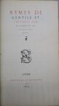 PERNETTE DU GUILLET. RYMES DE GENTILE (sic) ET VERTUEUSE DAME D. PERNETTE DU GUILLET LYONNOISE. LYON, SCHEURING, 1864. Un volume, in-12, de XXVII pp., 93 pp., (1) f.,pleine reliure de l'époque en maroquin sombre. Dos à 5 nerfs cloisonné et doré portant le titre doré, triple filet doré d'encadrement, filets dorés sur les coupes, large dentelle dorée intérieure, tranches dorées. Une coiffe et les coins émoussés.