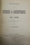 PERRIER (J.). HISTOIRE DES ÉVÊQUES & ARCHEVÊQUES DE LYON. LONS - LE - SAUNIER, MAYET & Cie, 1887. Un volume, in-8, de VIII pp., 164 pp., demi-reliure à la bradel de l'époque en percaline bleue. Pièce de titre en maroquin rouge sur le dos, premier plat de la couverture conservé.