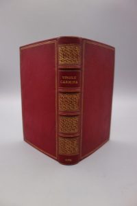 VIRGILE. PUBLII VIRGILII MARONIS CARMINA OMNIA. Perpetuo commentario ad modum joannis bond explicuit Fr. Dubner. PARIS, EX TYPOGRAPHIA FIRMINORUM DIDOT, 1858. Un volume, in-12 (8 x 14 cm) de (1) f., XVI pp., 470 pp., (1) f., pleine reliure de l'époque en chagrin rouge. Dos à 4 nerfs entièrement recouvert d'un décor d'arabesques dorées et portant le titre doré. Double filet d'encadrement doré sur les plats.