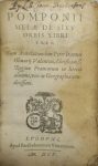 MELA POMPONIUS. DE SITU ORBIS LIBRI TRES, cum annotationibus Ptri Ioannis Olivarii Valentini... LUGDUNI, BARTHOLOMÉ VINCENT, 1605. Un volume, in-12, de 116 pp., pleine reliure de l'époque en vélin souple. Titre manuscrit sur le dos. Cerne de mouillure dans une partie de l'ouvrage.