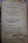 PLUTARQUE. VIE DES HOMMES ILLUSTRES (Plutarchi Chaeronensis parallela, seu vitæ parallela, seu vitæ parallelæ. Id est vitae illustrium...). Interprete Hermanno Cruserio. s. l., s. n., 1561. Un volume, in -8, de 506 pp. - 552 pp., pleine reliure de l'époque en vélin à rabat souple. Titre manuscrit sur le dos.