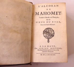 L'Alcoran de Mahomet traduit d'Arabe en François.La Haye. Chez Adrian Moetjens. 1683. 1 volume petit in-12, veau brun de l'époque, dos à nerfs orné. Nouvelle édition, illustrée d'1 frontispice, de la traduction d'André du Ryer, première traduction intégrale du Coran en langue vernaculaire européenne. L'édition originale date de 1647. Ex-libris Desaveaux (manuscrit) et Robert Roisse. Petits frottements aux coiffes et sur les dos, quelques taches sur les plats